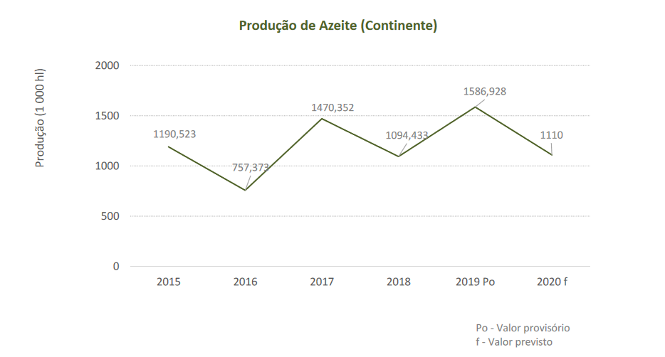 A nível nacional, a cotação mais frequente do azeite virgem extra (≤ 0,8°) em garrafão de 5 litros variou entre 3,60€/litro na área de mercado Trás-os-Montes e manteve-se no máximo de 5,198€/litro na área de mercado Alentejo Sul. As cotações de azeite virgem (0,8°≤ 2,0°) em garrafão de 5 litros mantiveram-se entre 2,89€/litro na área de mercado Trás-os-Montes e 4,80€/litro na da Beira Litoral.