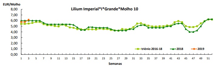 Lilium – Na região Norte, na área de mercado de produção Entre Douro e Minho, as cotações mantiveram-se estáveis. A oferta foi suficiente para a procura. Escoamento regular.