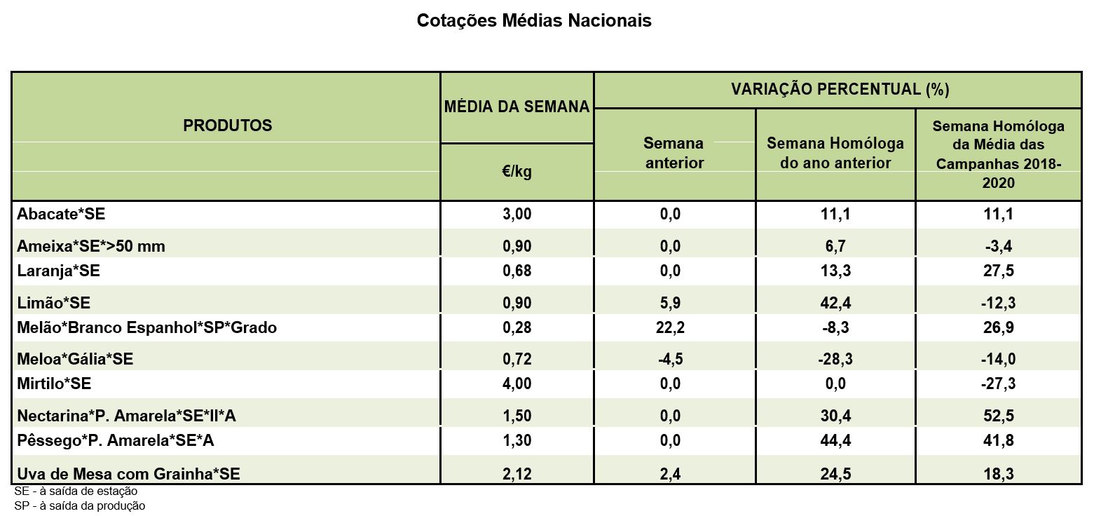 Cotações – Frutos Frescos e Secos – 26 de julho a 1 de agosto 2021