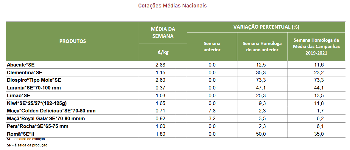 Cotações – Frutos Frescos e Secos – 6 a 12 de dezembro de 2021