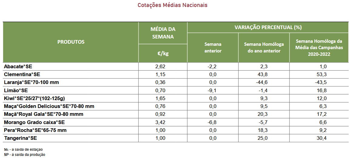Cotações – Frutos Frescos e Secos – 6 a 12 de dezembro de 2021