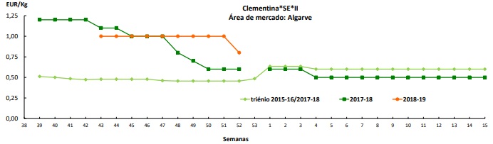 Clementina – No Algarve, as cotações desvalorizaram devido ao aumento da oferta. Escoamento regular.