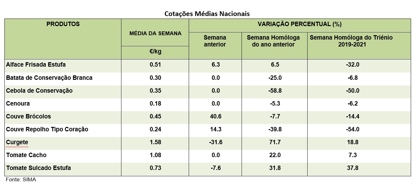 Nabiça – Na Região Norte, na área de mercado Entre Douro e Minho a cotação mínima desceu e a máxima subiu. Oferta média equilibrada com a procura. Escoamento sem dificuldades. Produção ao ar livre e em estufa.