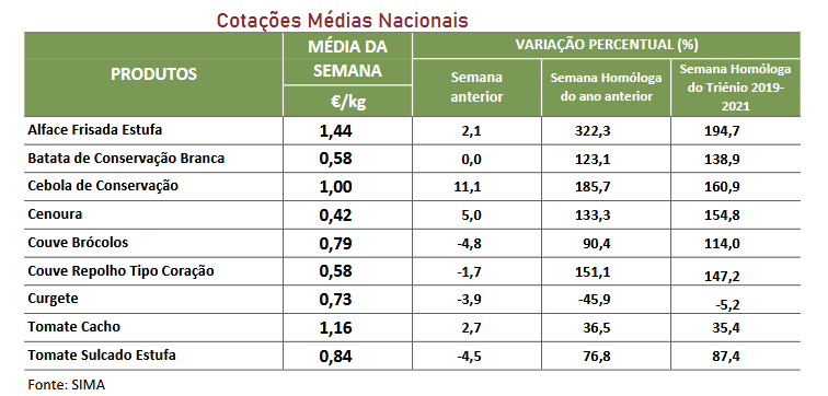 para o espinafre de 14%, devido a uma maior oferta.