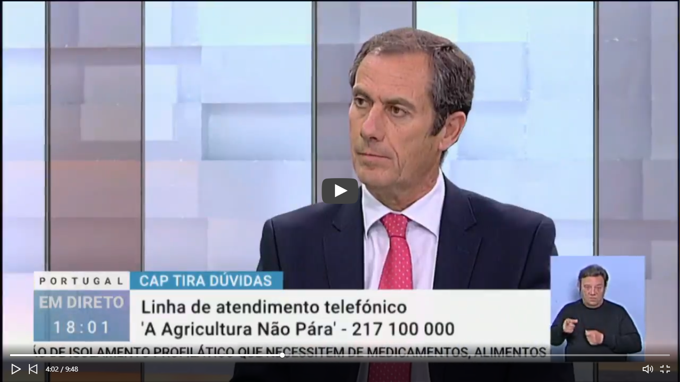 Luís Mira, Secretário Geral da Confederação de Agricultores de Portugal, esclarece algumas questões relacionadas com a situação da agricultura em Portugal, no Portugal em Direto (excerto do programa de 26 de março).