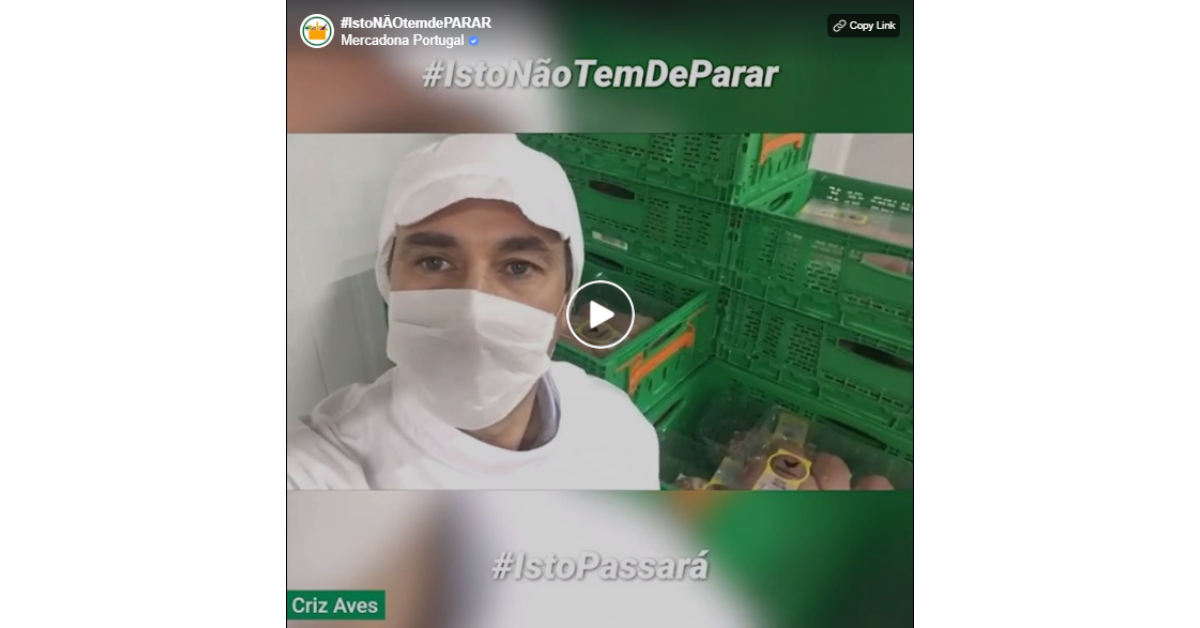 Diversos fornecedores, entre os 300 fornecedores portugueses que atualmente trabalham com a Mercadona, juntam-se para transmitir uma mensagem positiva porque Isto Não Tem de Parar. É esta a força que une a cadeia agroalimentar, desde os produtores às cadeias de distribuição, para que todos os dias consigam garantir que os produtos cheguem às lojas e os clientes possam fazer a sua compra habitual.