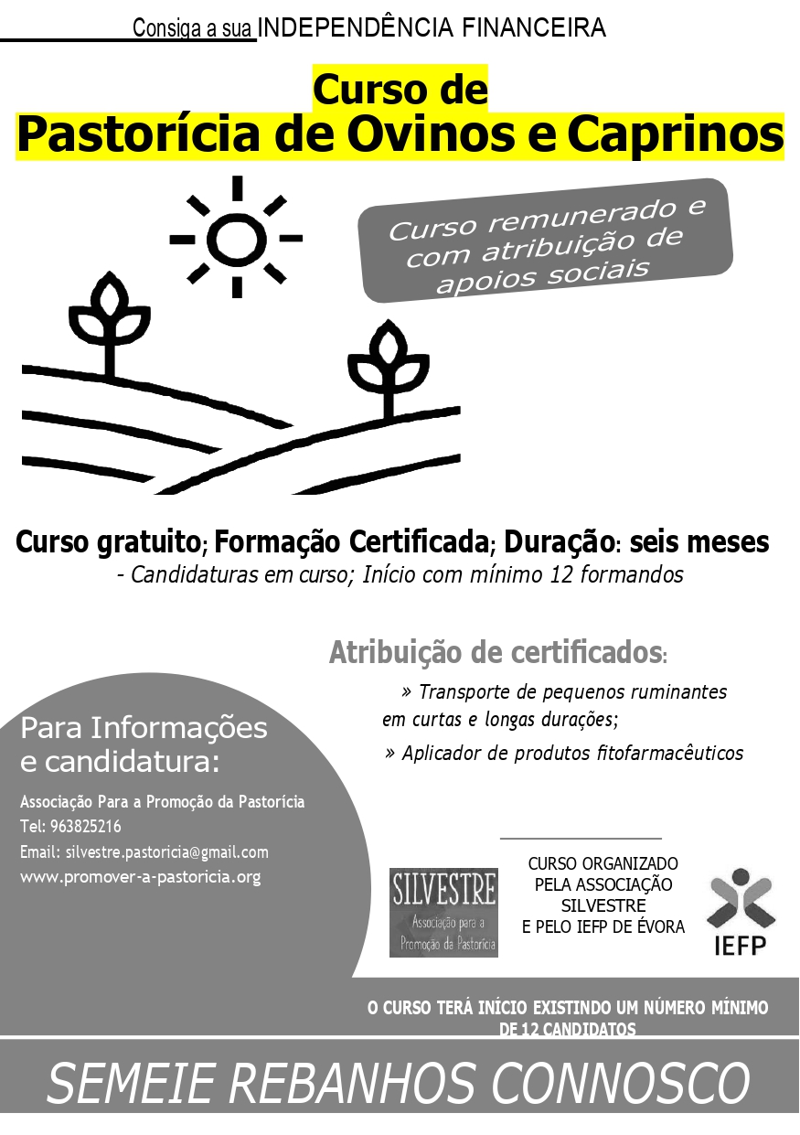 A Associação Silvestre – Associação para a Promoção da Pastorícia, organiza o Curso de Pastorícia de Ovinos e Caprinos a ter lugar em Évora, que em parceria com o IEFP da mesma cidade