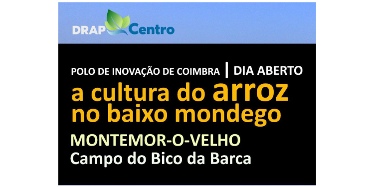 O Pólo de Inovação de Coimbra da DRAPCentro organiza no dia 31 de agosto, a partir das 9h15, o Dia Aberto “A Cultura do Arroz no Baixo Mondego”, no campo do Bico da Barca, em Montemor-o-Velho. No programa está prevista a realização de visitas aos ensaios e campos de arroz.