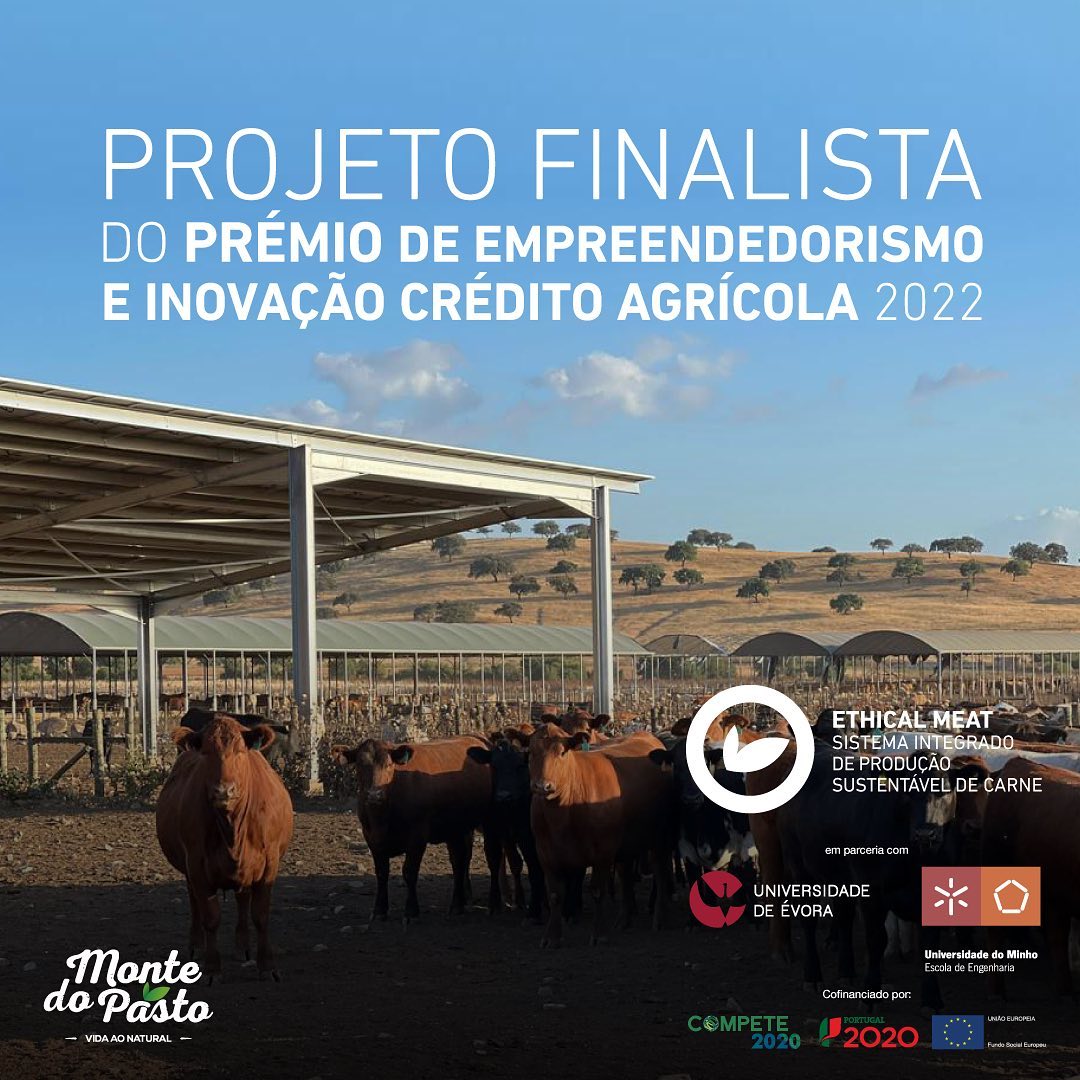 O Monte do Pasto é finalista do Prémio de Empreendedorismo e Inovação Crédito Agrícola 2022 com o projecto Ethical Meat – Sistema Integrado de Produção Sustentável de Carne, desenvolvido em parceria com as Universidades de Évora e Minho, parceiros tecnológicos pioneiros e cofinanciado pelo Compete 2020.