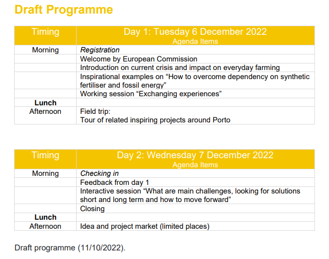 The European Commission’s Directorate-General for Agriculture and Rural Development (DG AGRI) and the EU CAP Network Support Facility for Innovation & Knowledge exchange | EIP-AGRI are organising a seminar on 6-7 December 2022 in Porto, Portugal to find innovative solutions in response to the accessibility and affordability of energy and fertilisers and build resilient farming and food systems through smart circular economy approaches at farm and local level to safeguard food security and address climate objectives.
