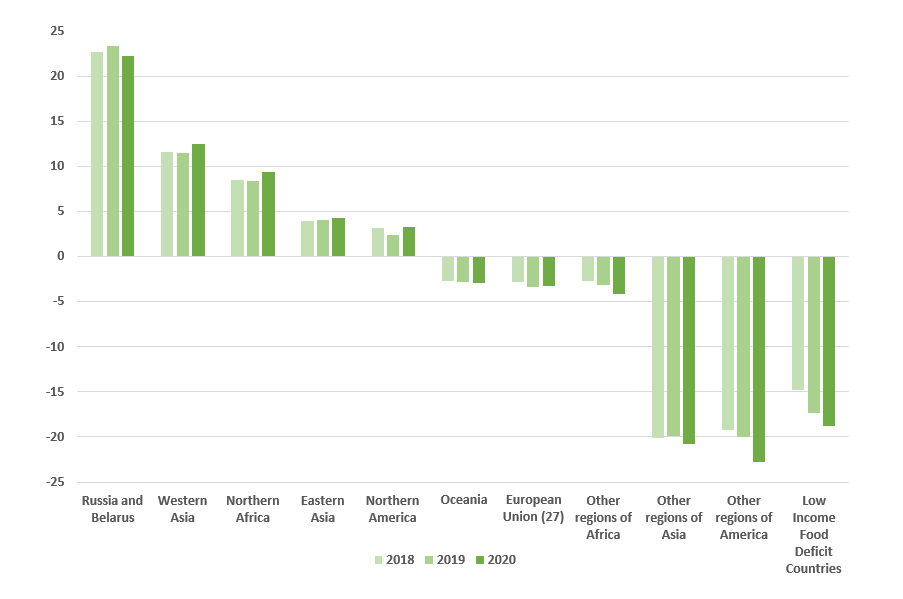 Figure 1: Net trade of fertilisers expressed in million tonnes of nutrients