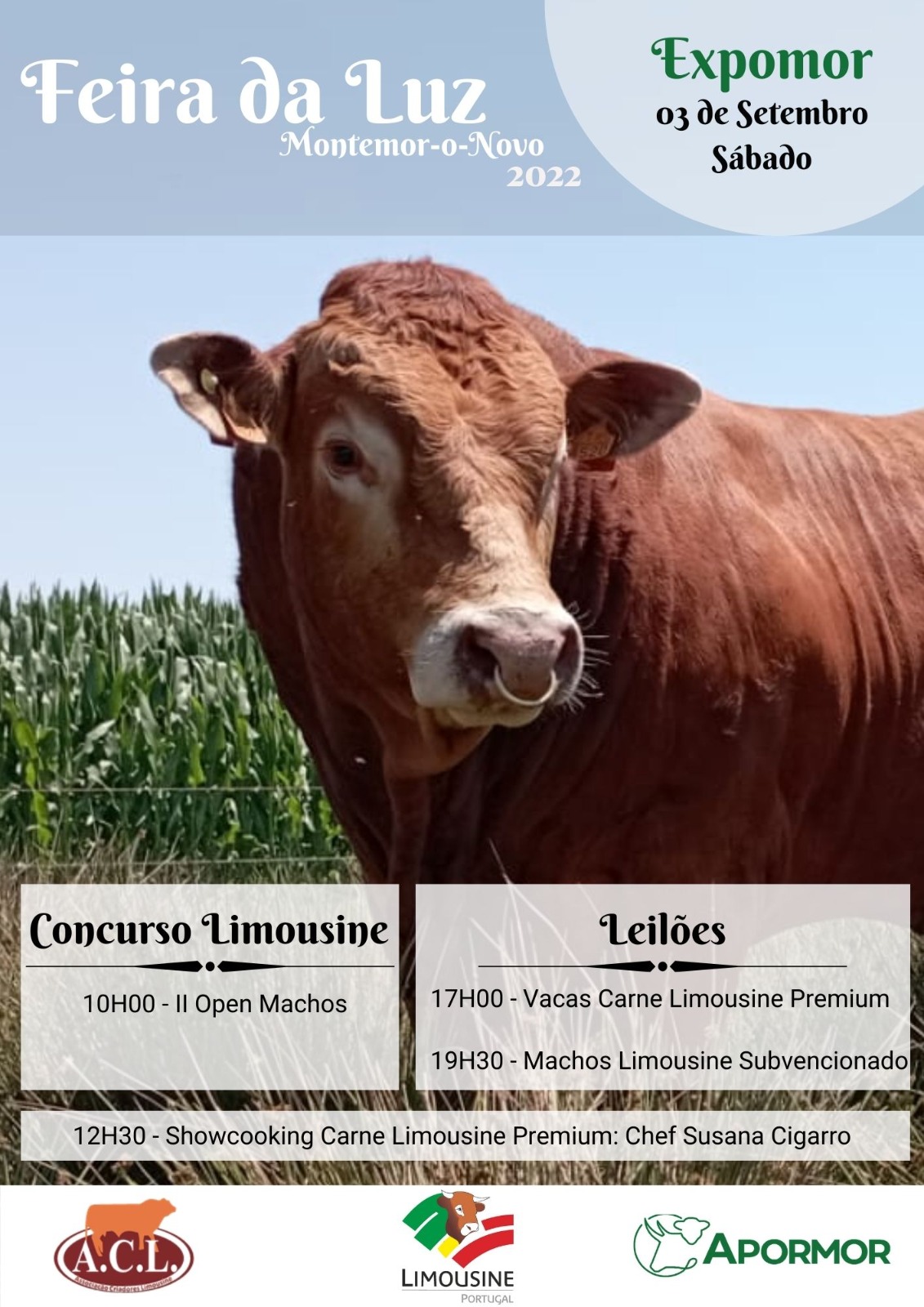 A raça Limousine marca presença, com exposição de animais, concurso de machos (II Open) e Leilão de Vacas Limousine Portugal Premium e Leilão de Machos Subvencionado, estes últimos irão decorrer no próximo sábado, 3 de setembro de 2022.