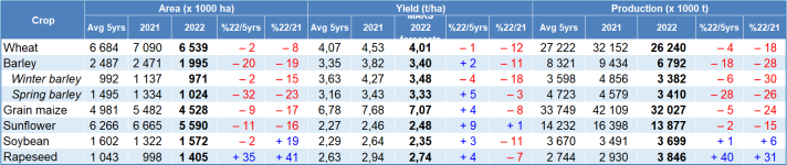 Russia’s war against Ukraine has seen a decrease in the area under grain maize and sunflowers. Consequently, our production forecasts for both crops is below the 5-year average, despite fair yield outlooks.