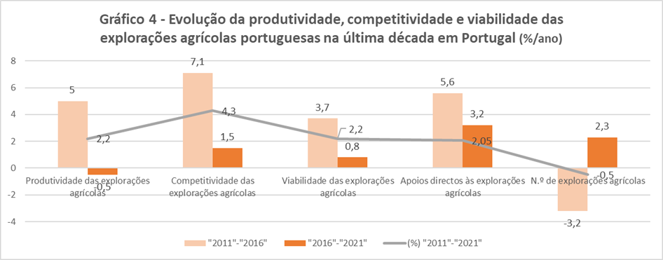 De facto, foi na última década que, apesar de todas as perturbações entretanto ocorridas (Troika, pandemia, invasão da Ucrânia e alterações nas políticas agrícolas nacional e da UE), que a agricultura portuguesa teve um comportamento económico globalmente favorável, com especial relevo para os resultados económicos alcançados pelas explorações agrícolas no período 2011 e 2016, ou seja, durante os anos da Troika.