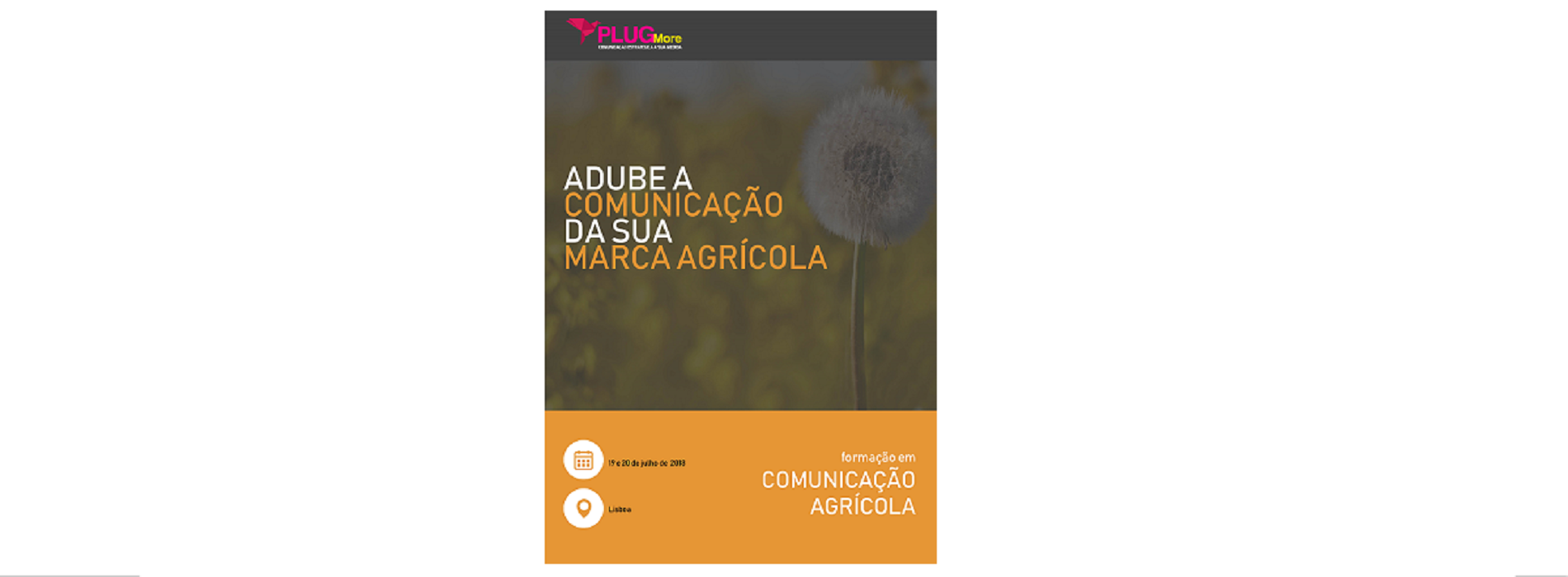 Nos próximos dias 19 e 20 de julho de 2018, irá realizar-se em Lisboa a formação em ‘Comunicação Agrícola’ – especificamente direcionada para todos os profissionais do setor em Portugal. Esta formação, organizada pela PLUG More, irá abordar todas as áreas prioritárias à definição de uma estratégia de comunicação e de marketing das marcas agrícolas, sendo um impulso para o desenvolvimento das competências necessárias para fazer vingar uma empresa neste setor tão complexo e particular.