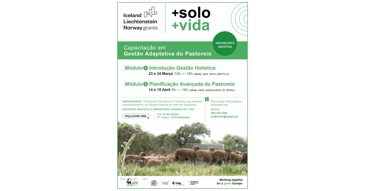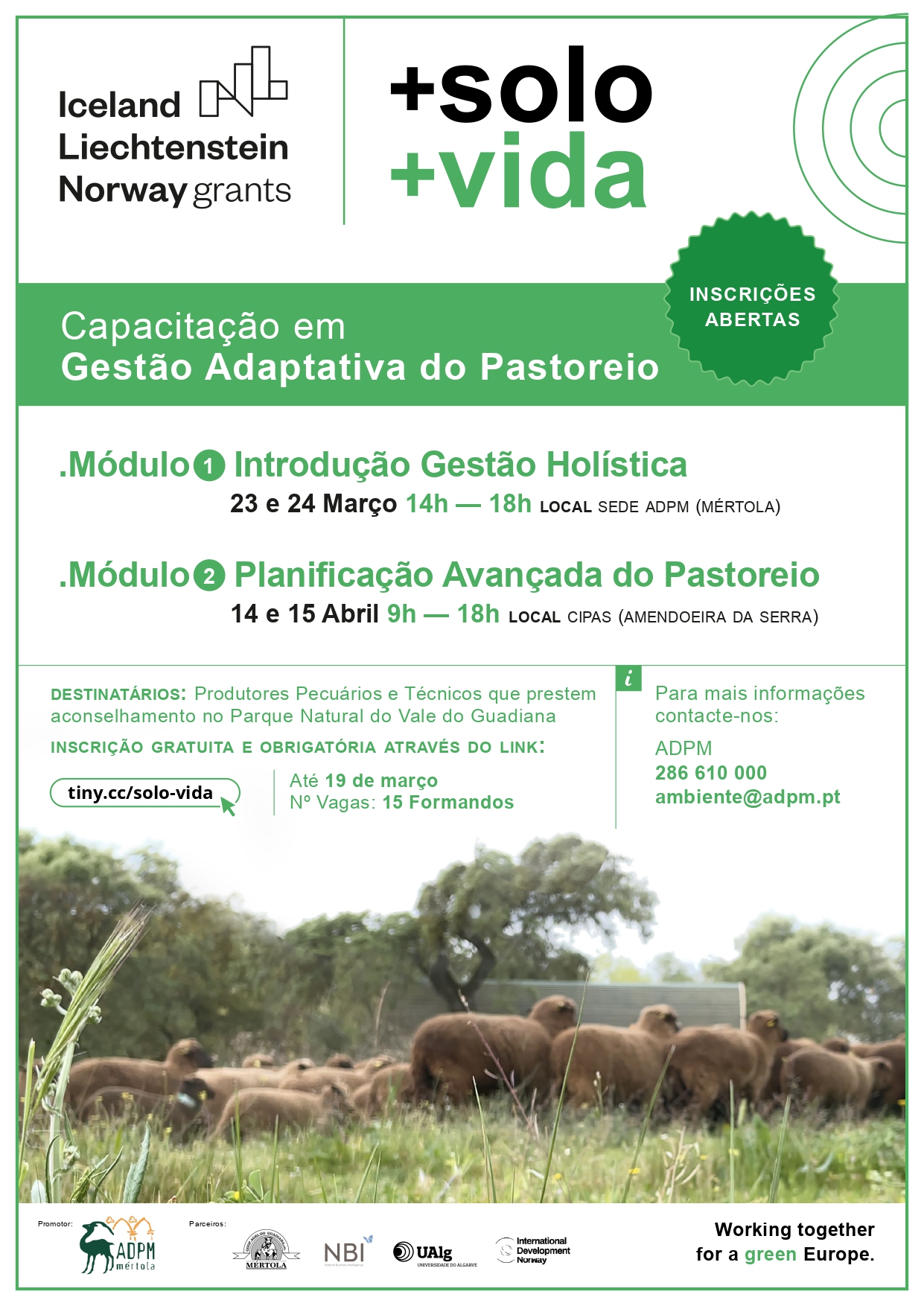 A ADPM – Mértola promove uma nova ação de capacitação do Programa Territorial +SOLO +VIDA em “Gestão Adaptativa do Pastoreio” que irá decorrer em dois módulos teórico-práticos, concentrados em quatro dias, com início já este mês, nas seguintes datas e locais: