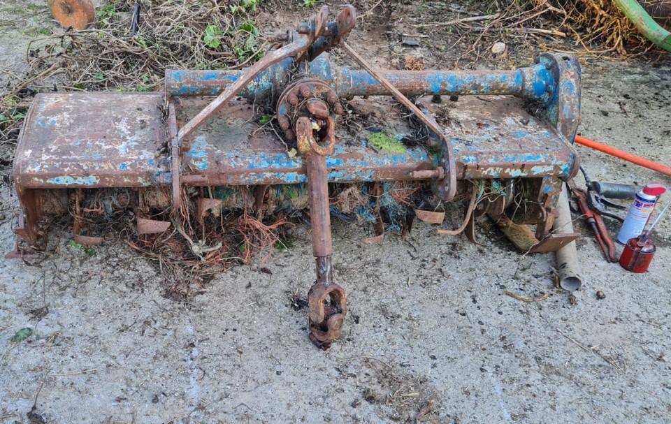 A geada de inverno murchou as ervas que cobriam a fresa. A necessidade de preparar um pequeno talhão de terreno para as primeiras batatas sem mexer na fresa grande que está parafinada à espera das lavouras para o milho levou-me a olhar de novo para esta máquina. Seria ainda capaz de funcionar? Recordo-me que parou a trabalhar. Faltava-lhe apenas um “perno” necessário para engatar ao trator. Fui buscá-lo a um velho pulverizador também encostado. Desencravei o cardan. Lubrifiquei cruzetas, veios e caixas com rolamentos e rodas dentadas que não viam massa e óleo há anos. Tirei uma verga de ferro que estava enroscada e encravada no veio das facas.
