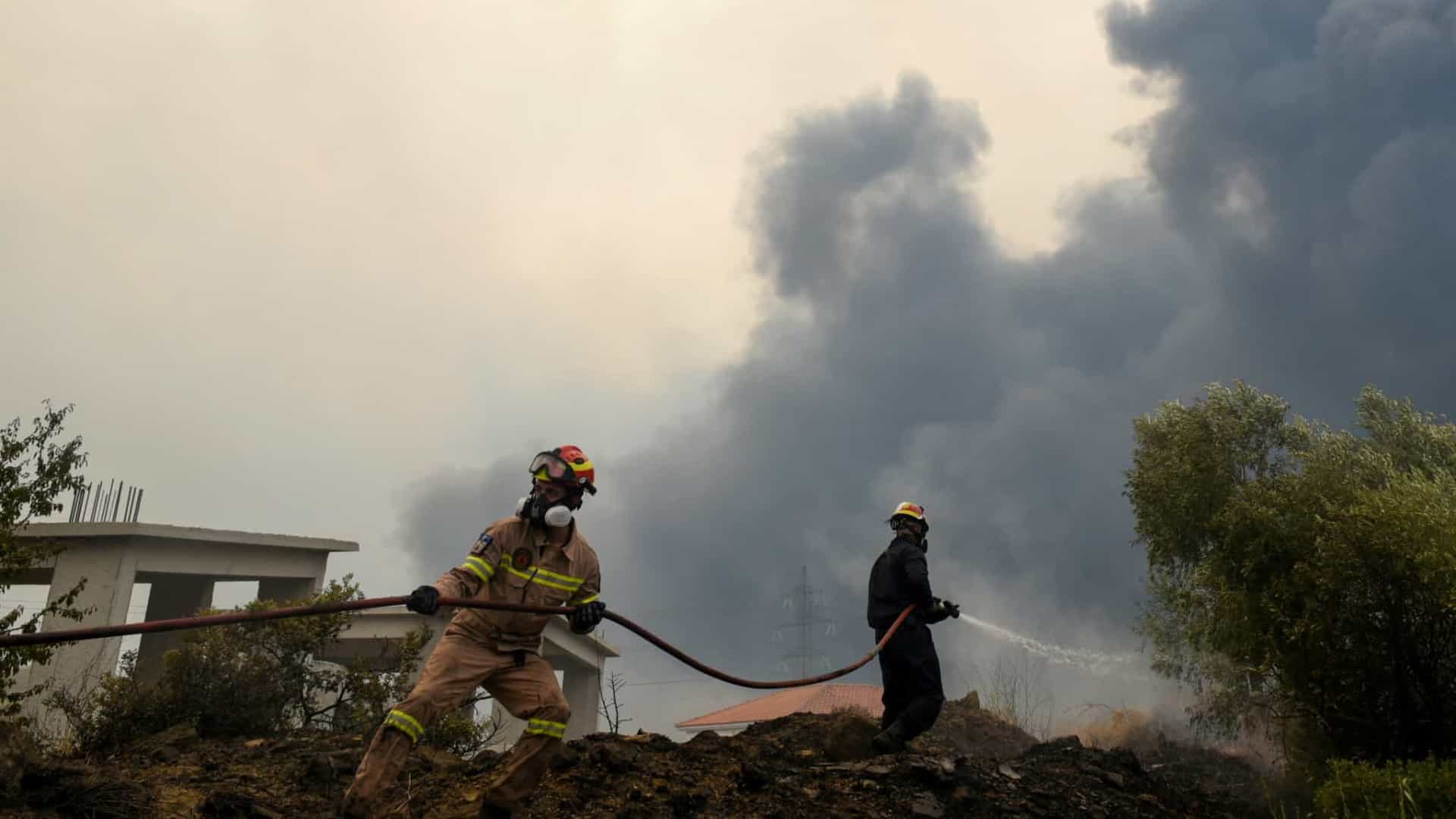 Os ventos fortes que se faziam sentir na região, aliados à subida das temperaturas, alimentaram as chamas na área de Schimatari, que fica a cerca de 50 quilómetros da capital grega.