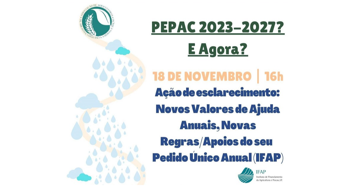 O IFAP – Instituto de Financiamento da Agricultura e Pescas promove uma ação de esclarecimento no âmbito do PEPAC 2023-2027 sobre os novos valores de ajuda anuais, novas regras, e apoios ao Pedido Único Anual.