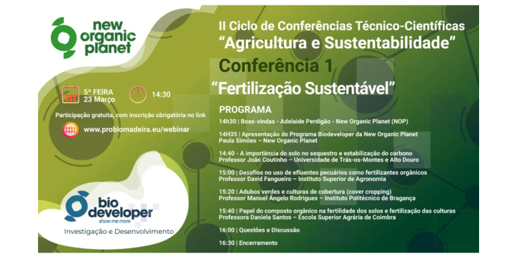 Realiza-se no dia 23 de março de 2023, no âmbito do II Ciclo de Conferências Técnico-Científicas ” Agricultura e Sustentabilidade” o webinar: Fertilização Sustentável