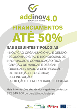 Assim, com objetivo de desenvolver o setor agroindustrial e reforçar a capacidade do tecido empresarial, o Projeto AddInov 4.0 disponibiliza financiamentos, às empresas que pretendam implementar novos métodos de organização, reforçar a presença na economia digital, utilizar novas tecnologias, implementar certificações, investir no design e criação de uma marca ou apostar na Eco-inovação.