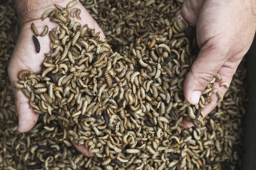 Há três anos, Rui Nunes juntou-se a Daniel Murta, 34 anos, na EntoGreen, uma empresa sediada no Vale de Santarém, nas instalações do Instituto Nacional de Investigação Agrária e Veterinária, a primeira instituição a acreditar nesta produção de moscas soldado-negro. Daniel, veterinário e investigador, sabe que existe um problema europeu de escassez de proteína para a produção animal e que os insetos são a saída para esta encruzilhada. Por enquanto, a lei só permite transformá-los em alimentação para peixes, mas espera-se que em breve esta se estenda às aves e aos porcos.
