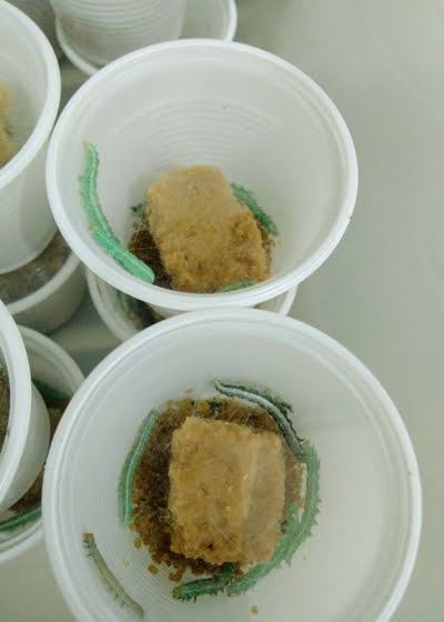 “O objetivo foi avaliar se os extratos feitos com cada uma das quatro espécies de plantas apresentam ação inseticida ou nociva ao desenvolvimento das lagartas de H. armigera e A. gemmatalis, via ingestão”, conta Jeanne. Ela lidera uma equipa que integra mais três cientistas: Sonia Queiroz, Simone Prado e Marta Assis.