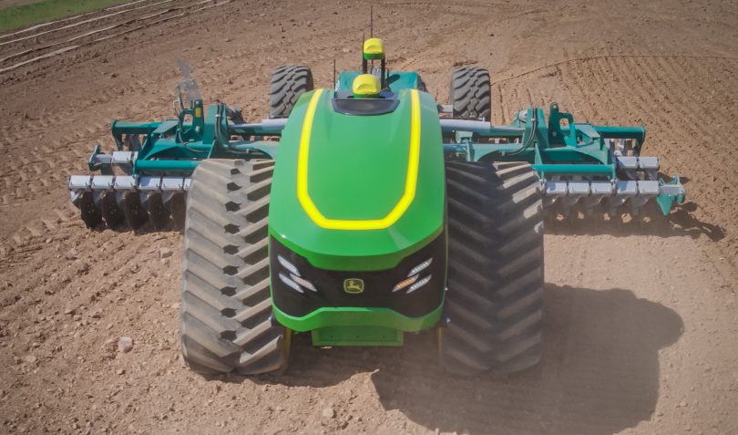 A fabricante de equipamentos agrícolas norte-americana John Deere apresentou recentemente, durante a Agritechnica, a principal feira mundial de tecnologia agrícola do mundo realizada em Hanover, na Alemanha, um trator autónomo e um drone gigante.