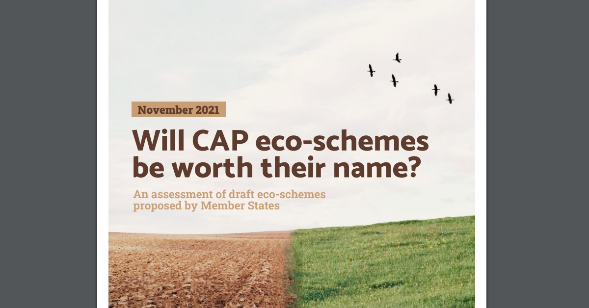 Member States have until 1 January 2022 to submit their CSPs to the European Commission. The report covers draft eco-schemes from 21 Member States and finds that most will fall very short of expectations: