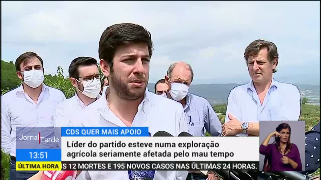 O presidente do CDS pede ao Governo que apoie os agricultores afetados pelo temporal dos últimos dias.