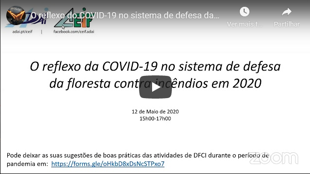 Intitulado “O reflexo da COVID-19 no sistema de defesa da floresta contra incêndios em 2020”, este Webinar é promovido pelo Centro de Estudos sobre Incêndios Florestais (CEIF) da Faculdade de Ciências e Tecnologia da Universidade de Coimbra (FCTUC), coordenado pelo cientista Domingos Xavier Viegas.