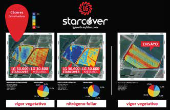 Através de voos direcionados na província da Extremadura, em Espanha, conseguimos observar a diferença de vigor vegetativo e azoto foliar entre plantas com, e sem, Starcover.