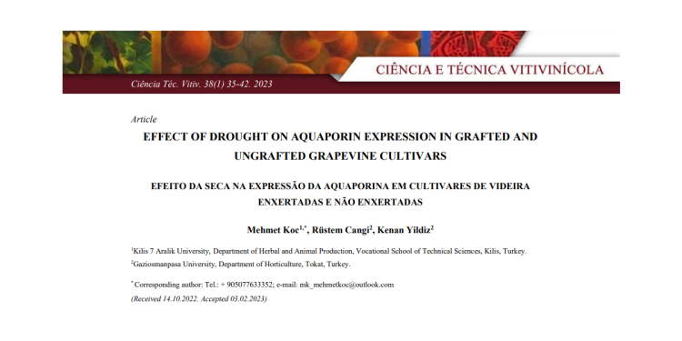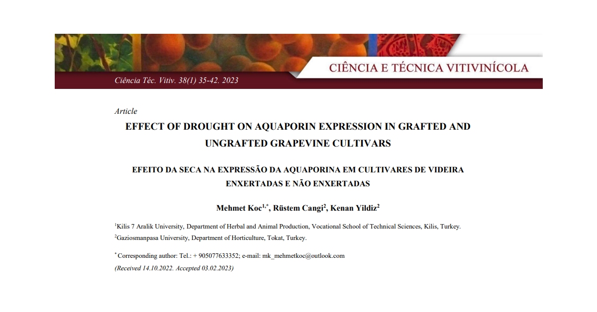 O stress hídrico afeta consideravelmente o crescimento, o desenvolvimento e a produtividade na maioria das culturas agrícolas. Desde a antiguidade, os porta-enxertos têm sido utilizados para permitir as culturas em condições de solo inadequadas. No presente estudo, foram avaliados três fatores: 1) cultivar: foram utilizadas as cultivares ‘Horozkarası’ (tolerante à seca) e ‘Kabarcık’ (sensível à seca) da espécie Vitis vinifera L; 2) porta-enxertos: cada cultivar foi auto-enraizada e enxertada no porta-enxertos ‘Rupestris du Lot’; 3) stress hídrico: metade de cada combinação cultivar/porta-enxertos foi sujeita a stress hídrico e a outra metade foi irrigada à capacidade de campo durante sete dias. Para estimar as respostas das cultivares, procedeu-se à quantificação do teor relativo de água, do teor de prolina e dos níveis de expressão da isoforma aquaporina (VvPIP2;1, VvPIP2;2, VvTIP1;1 e VvTIP2;1). Os resultados revelaram que o stress hídrico causou maior redução no conteúdo relativo de água (RWC na cultivar ‘Kabarcık’ (sensível à seca) do que na cultivar ‘Horozkarası’ (tolerante à seca). O teor de prolina aumentou em ambas as cultivares em resposta ao stress hídrico, mas em maior quantidade na cultivar enxertada ‘Kabarcık’. Em relação aos níveis de expressão dos genes, foram regulados negativamente os genes VvPIP2;1, VvPIP2;2 e VvTIP2;1 enquanto o gene VvTIP1;1 foi regulado positivamente na folha. Tanto a cultivar ‘Horozkarası’ como a cultivar ‘Kabarcık’ mostraram tendências semelhantes no respeitante às suas respostas ao stress hídrico. A enxertia provocou um aumento significativo do teor de prolina em ambas as cultivares sujeitas ao déficit hídrico. O porta-enxertos conferiu melhor proteção contra a seca na cultivar ‘Kabarcık’ do que na cultivar ‘Horozkarası’.