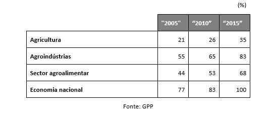 Pode-se, neste contexto, concluir que o aumento, entre “2005” e “2015”, da produção agroalimentar nacional se destinou integralmente às exportações e que o consumo interno desses mesmos bens se tornou cada vez mais dependente das importações, cujo peso na procura interna de bens alimentares aumentou 27% em “2005” para 33% em “2010 e para 35% em “2015”.