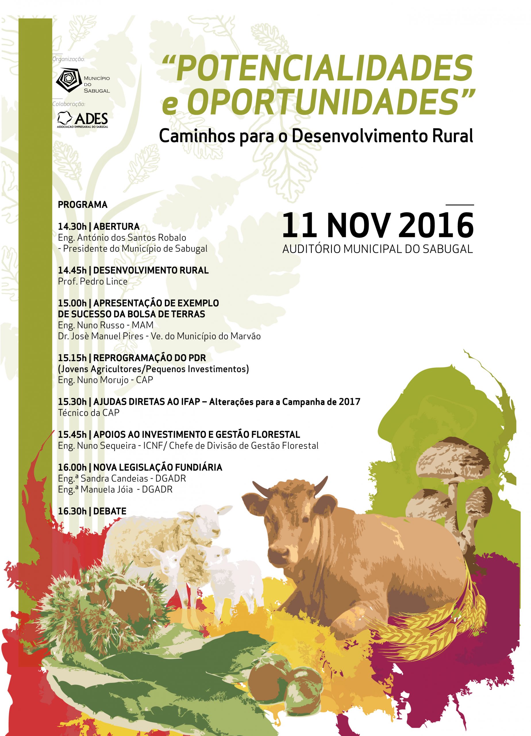 A pensar na valorização da economia do concelho do Sabugal, vai realizar-se no próximo dia 11 de novembro, pelas 14h30, no Auditório Municipal, o seminário/debate subordinado ao tema “Potencialidades e Oportunidades” – Caminhos para o Desenvolvimento Rural, uma organização do Município, em colaboração com a ADES – Associação Empresarial do Sabugal.