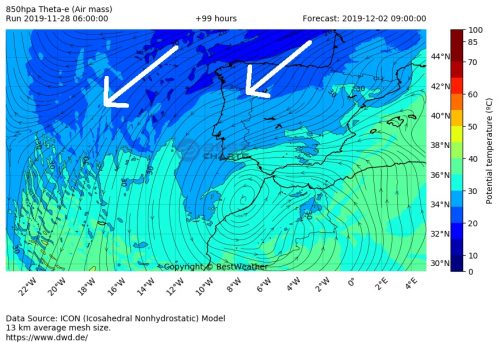 Domingo uma massa de ar bastante mais frio, com origem no mar do norte, deverá iniciar o seu avanço sobre o território. Ainda poderão ocorrer alguns aguaceiros dispersos mas a principal notícia será a descida da temperatura e a intensificação do vento, em especial a partir da tarde e com principal notoriedade nas terras altas do norte e centro.