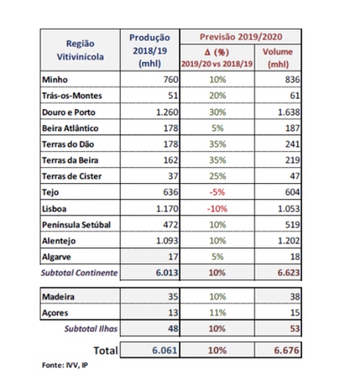 As melhores produções são esperadas nas regiões do Douro, Dão ou Beira, que esperam aumentos de cerca de 30% face ao período homólogo. As únicas exceções deverão ser as regiões de Lisboa e Tejo, para as quais são esperadas quebras de 10% e 5%, respetivamente nas produções desta campanha. No Alentejo, a produção de vinho deverá crescer 10%, assim como na Península de Setúbal.