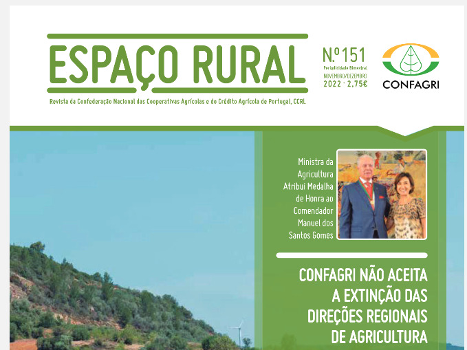 A Edição nº 151 da Revista Espaço Rural tem como tema de capa o artigo “CONFAGRI Não Aceita a Extinção das Direções Regionais de Agricultura”, onde é dado a conhecer a posição da CONFAGRI relativamente a esta medida do Governo, bem como a participação da Confederação numa audição sobre o tema, no âmbito da Comissão Parlamentar de Agricultura e Pescas.