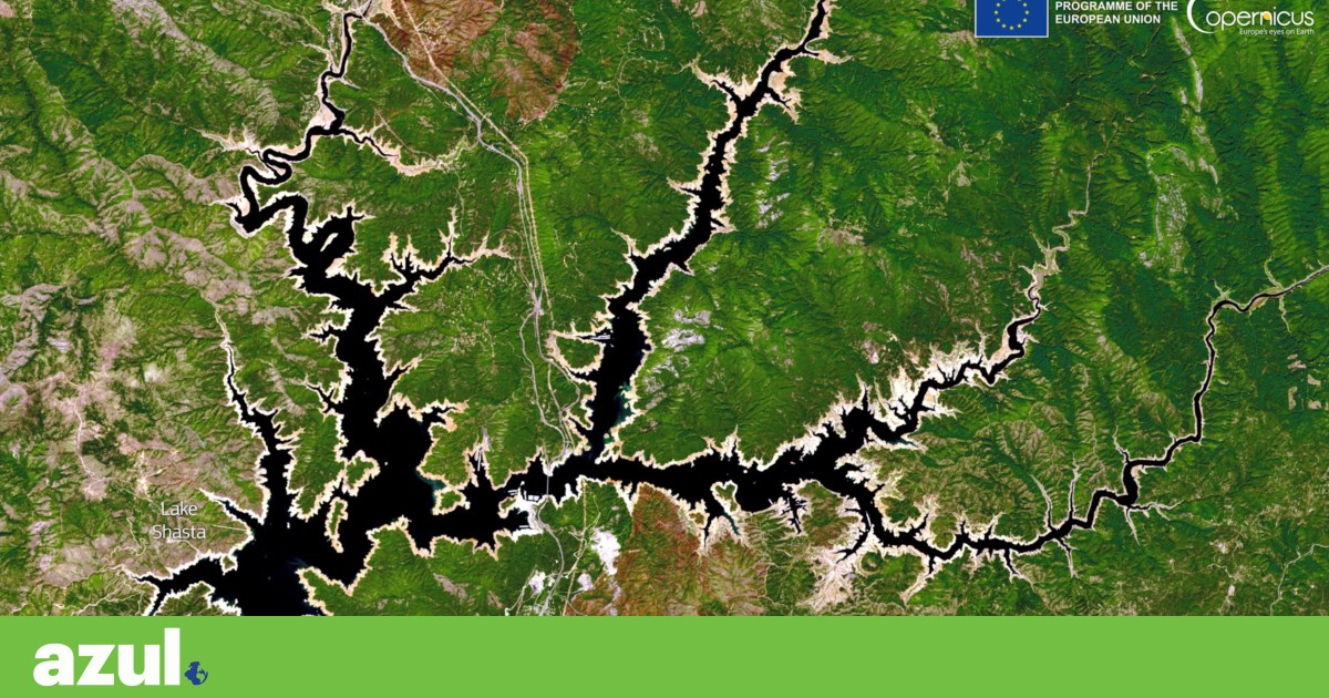 A seca que a Califórnia enfrenta já é visível do espaço: o lago Shasta, o maior reservatório de água deste estado dos Estados Unidos, “emagreceu”. Está actualmente com 40% da capacidade total, o nível mais baixo registado em 45 anos. Nesta imagem, registada por um dos satélites europeus do programa Copernicus, o Sentinela-2, no dia 4 de Maio, o Shasta assemelha-se em vários segmentos a rachaduras resultantes de fissuras numa porcelana verde.