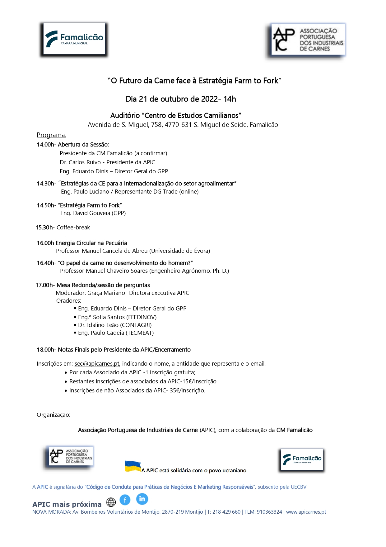 Decorre no dia 21 de outubro de 2022 – 14h – o seminário organizado pela APIC com o apoio da CM Famalicão: O Futuro da Carne face à Estratégia Farm to Fork.