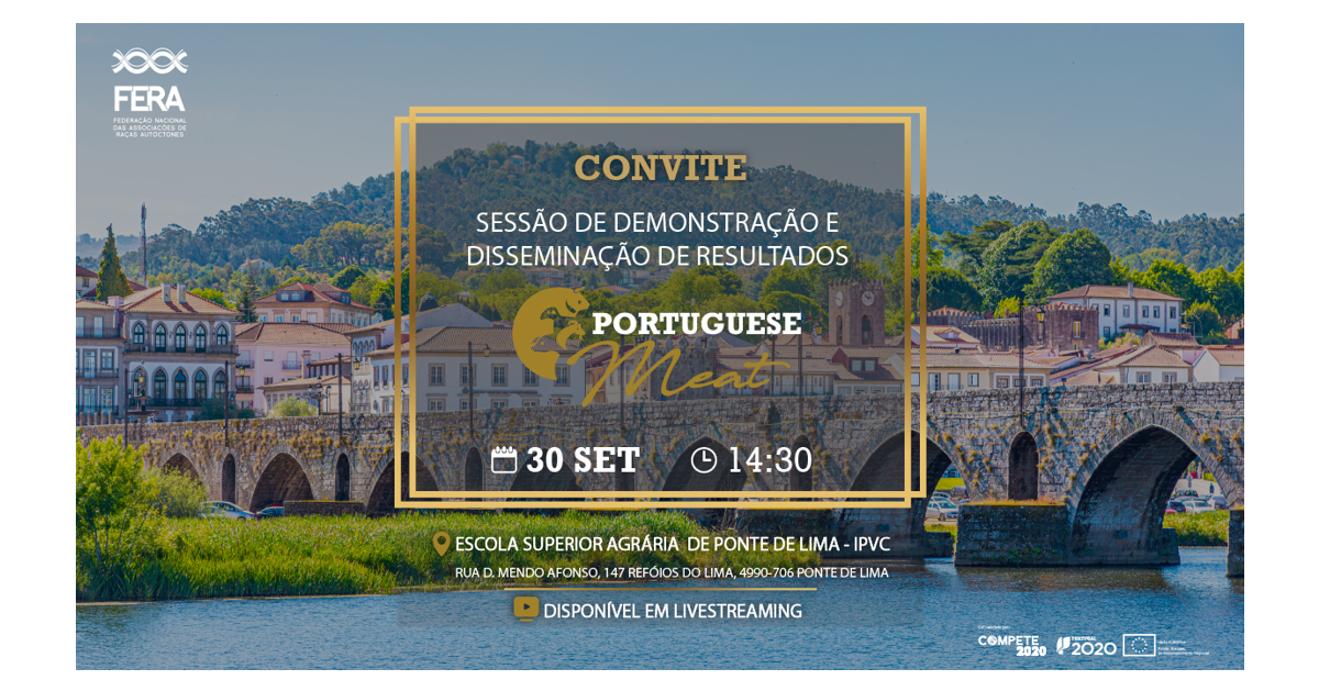 A Federação Nacional das Associações de Raças Autóctones (FERA), irá realizar no próximo dia 30 de setembro de 2022, pelas 14h30, uma SESSÃO DE DEMONSTRAÇÃO E DISSEMINAÇÃO DOS RESULTADOS DO PROJETO CONJUNTO DE INTERNACIONALIZAÇÃO PORTUGUESE MEAT.