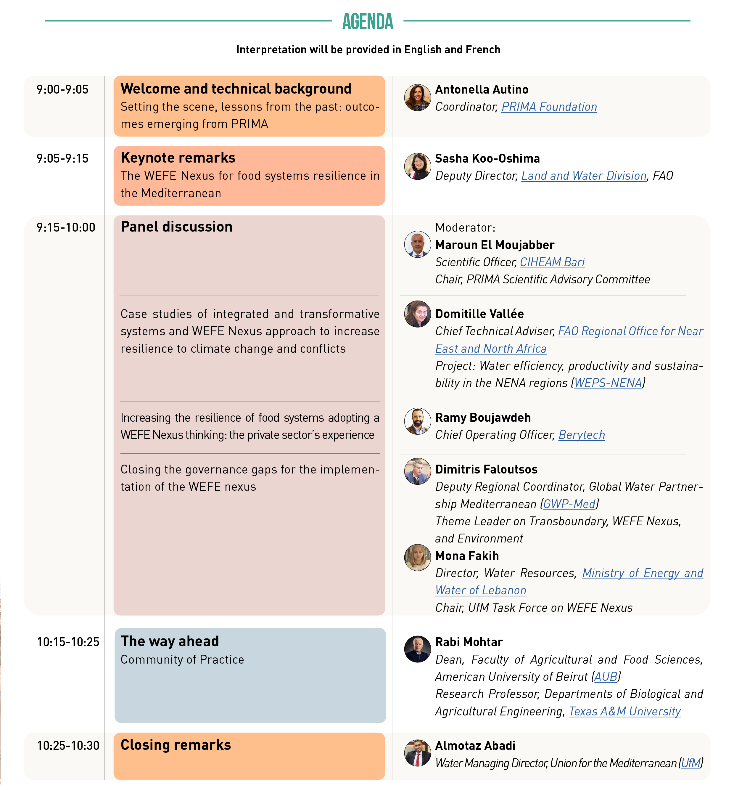 A iniciativa é organizada em conjunto pelo Centro Internacional de Estudos Agronómicos Mediterrânicos Avançados (CIHEAM), a Organização das Nações Unidas para a Alimentação e a Agricultura (FAO), o Secretariado da União para o Mediterrâneo (UfMS) e a Parceria para Investigação e Inovação na Área Mediterrânica (PRIMA) no âmbito da Plataforma SFS-MED, uma iniciativa multissetorial para Sistemas Alimentares Sustentáveis no Mediterrâneo.