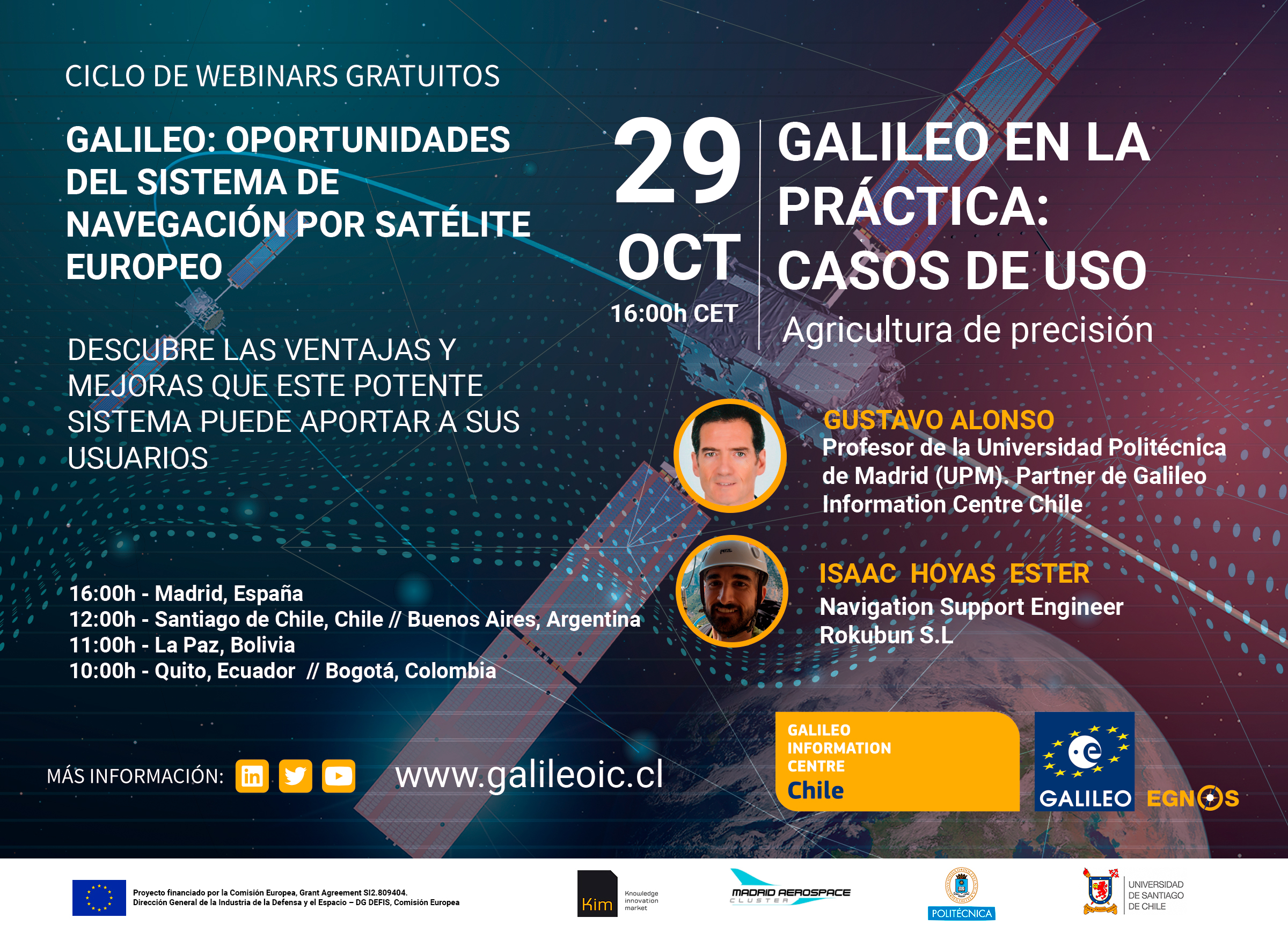 O próximo webinar decorre no dia 29 de outubro, às 12h00 (Chile), 15h00 em Lisboa, e é inteiramente dedicado à aplicação dos sistemas Galileo e EGNOS no setor da Agricultura de Precisão.