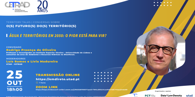 Face a um ano hídrico (2021/22) excecionalmente seco na Europa, com forte impacto na Península Ibérica, e numa altura em que os bombeiros continuam a levar água às populações das regiões portuguesas mais afetadas pela seca (nomeadamente Bragança, Vila Real e Viseu), é pertinente questionar se “o pior ainda está para vir”. A situação de seca meteorológica e a falta de água, em grande parte provocadas pelas alterações climáticas, são já um problema que ameaça o futuro do planeta. Prevê-se que a propensão para secas e escassez de água em Portugal aumente exponencialmente até 2050. É por isso que o especialista na área da hidrologia e da gestão de recursos hídricos, Rodrigo Proença de Oliveira, vai trazer à discussão os efeitos e as consequências nos diferentes territórios, nos padrões de ocupação e uso do solo, nos modelos de povoamento e nos sistemas de produção agrícola.