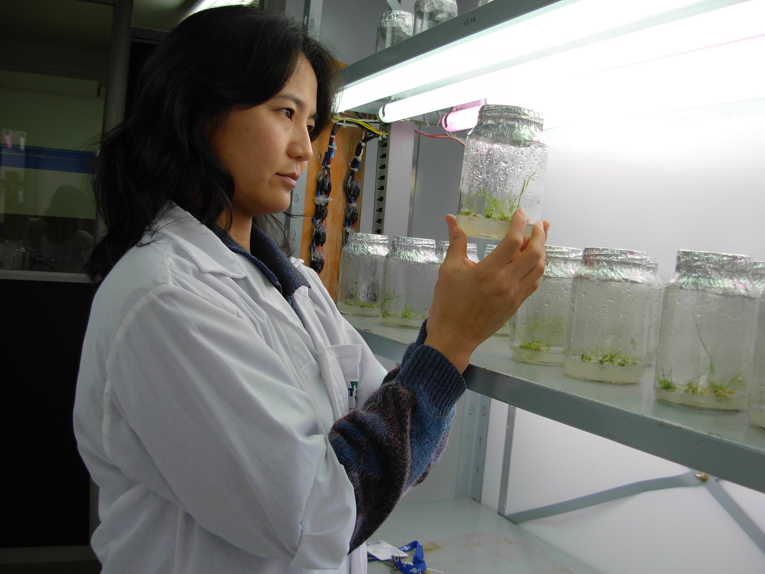 Imagem: Elene Lau no laboratório de biotecnologia da Embrapa Trigo – Foto: Joseani Antunes