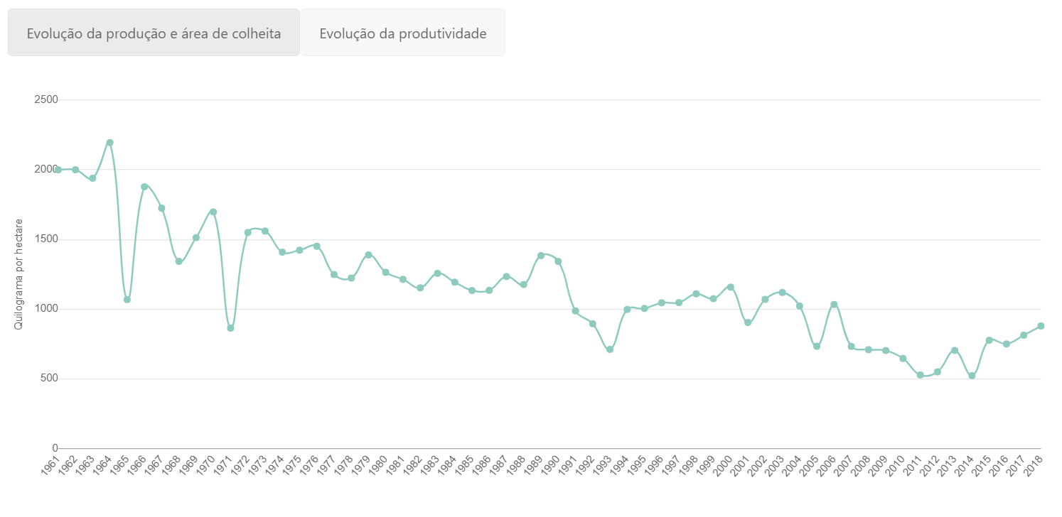 Se compararmos a colheita de 1962 (a mais elevada desde que o FAOSTAT disponibiliza dados) com a informação estatística mais recente, verifica-se uma queda de 96 mil toneladas/ano para 34,2 mil – uma diferença de quase 64% em perto de 60 anos. Ainda assim, 2018 é o terceiro melhor ano em produção desde o virar do século, com uma produção acima das 34 mil toneladas de castanha.