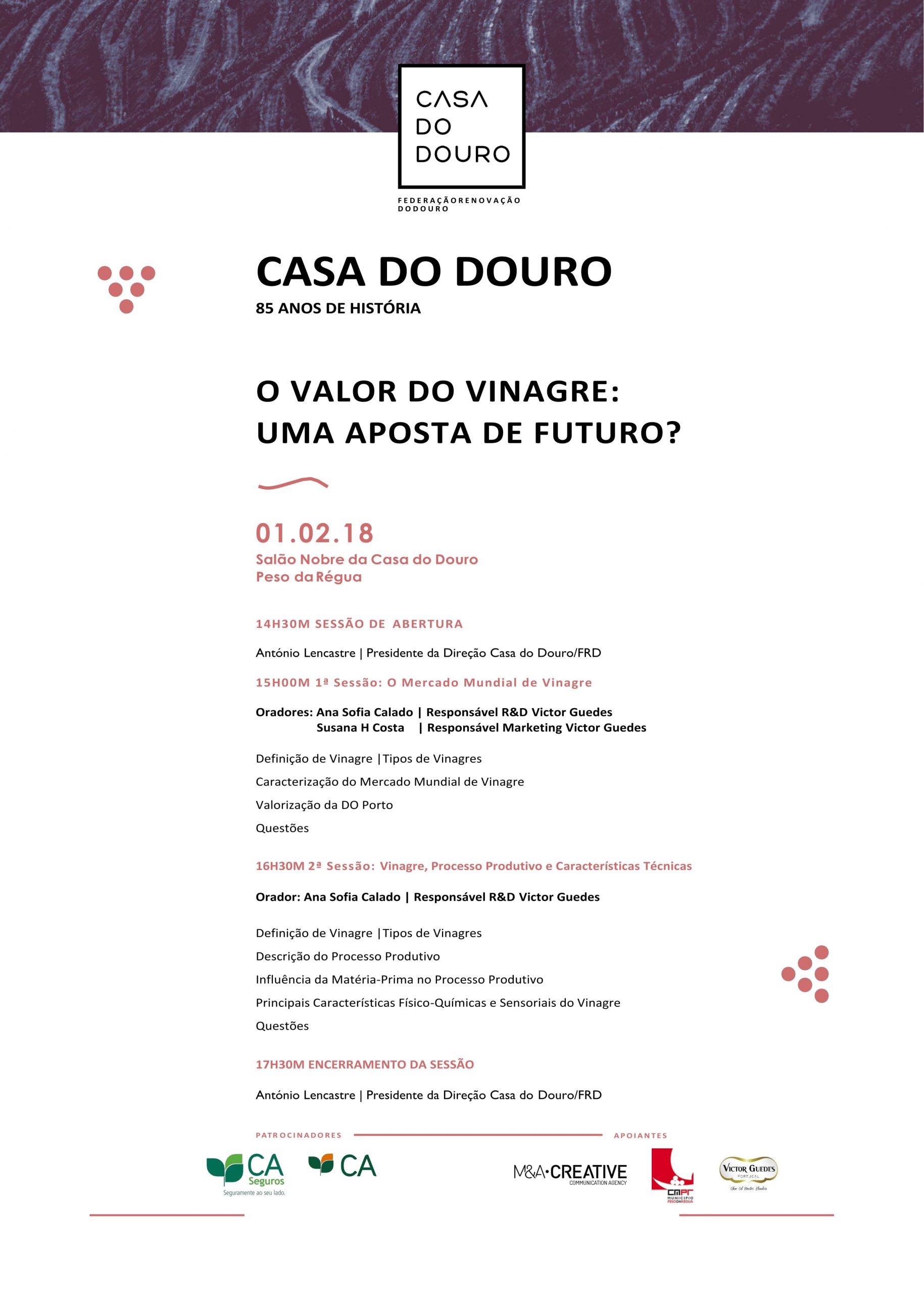 A nova casa do Douro/ Federação Renovação do Douro organiza uma Sessão de Esclarecimento: “O valor do vinagre: uma aposta de futuro?”, que ocorrerá no dia 1 de Fevereiro às 14h30m na Casa do Douro.