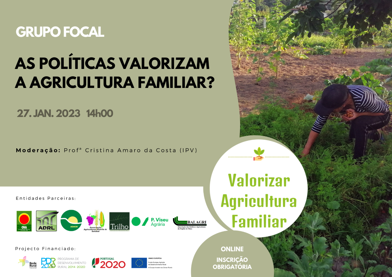 “As Políticas Valorizam a Agricultura Familiar?”. No próximo dia 27 de Janeiro, pelas 14h00, no âmbito do projecto Valorizar Agricultura Familiar, um grupo focal, moderado pela Profª. Cristina Amaro da Costa (IPV), irá debruçar-se sobre esta questão.