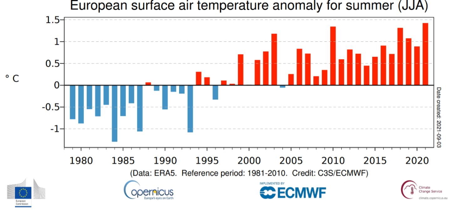 O verão de 2021 foi o mais quente de sempre na Europa.