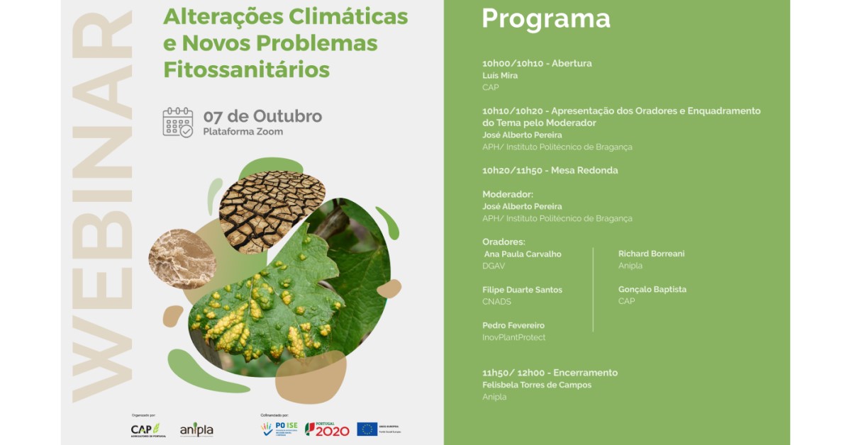 No próximo dia 7 de Outubro, pelas 10:00 horas, a CAP e a ANIPLA organizam um Webinar subordinado ao tema “Alterações Climáticas e Novos Problemas Fitossanitários”.